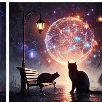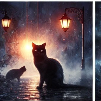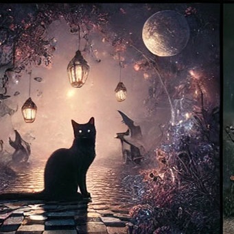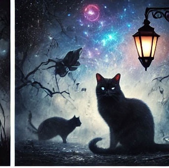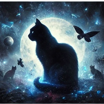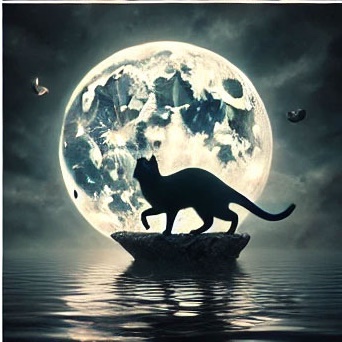 27. 검은 고양이가 달빛 아래에서 고요하게 있는 꿈 (길몽) – 달빛 아래 차분하게 있는 모습은 감성적 안정과 영적 치유를 의미합니다.