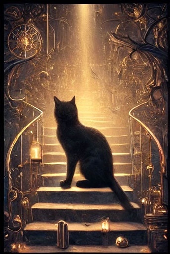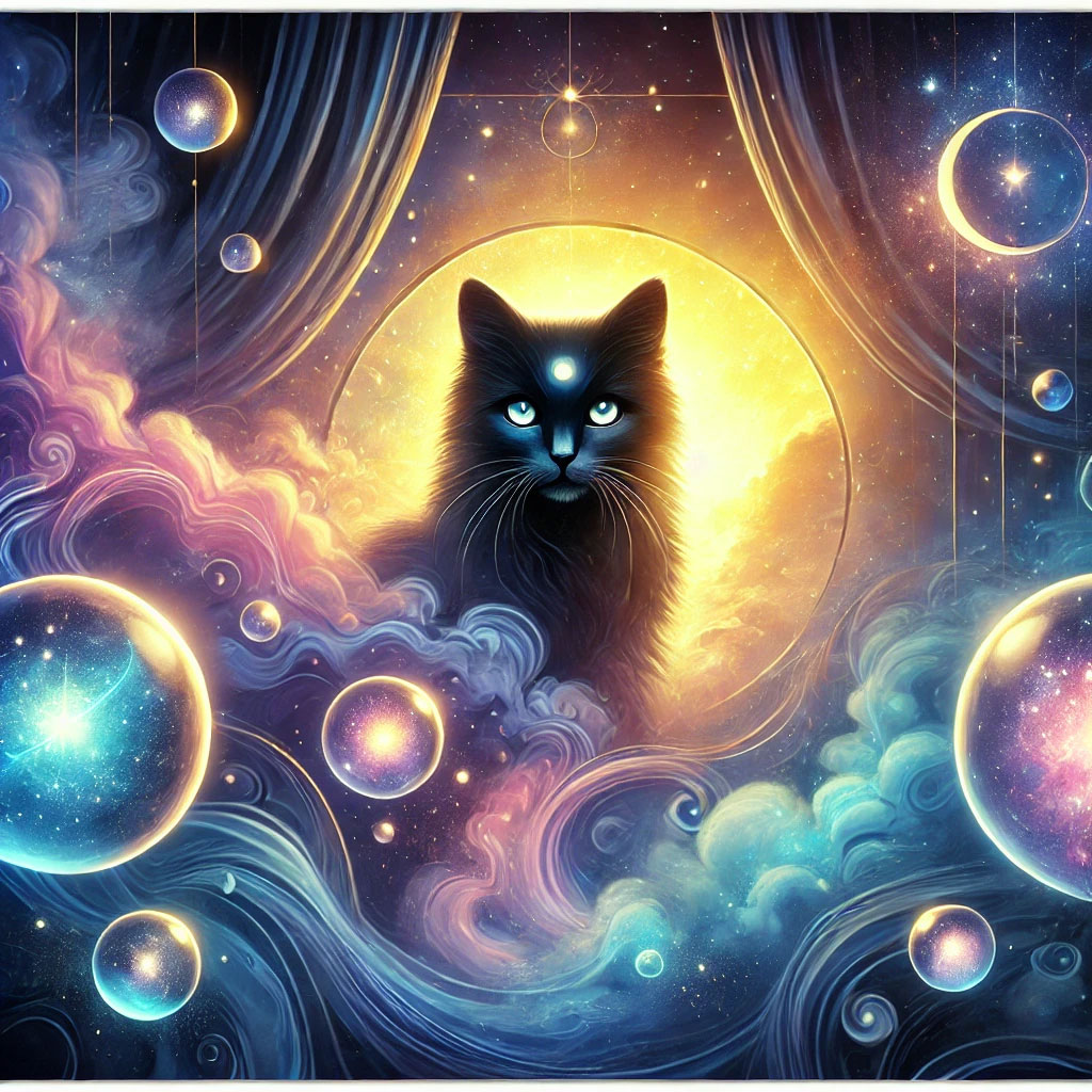 26. 검은 고양이가 부드러운 빛 속에 나타나는 꿈 (길몽) – 따뜻한 빛과 함께 나타나는 모습은 치유와 내면의 성장, 긍정적 변화를 상징합니다.