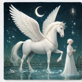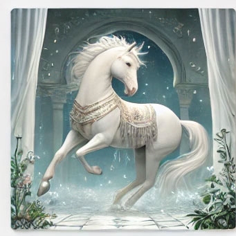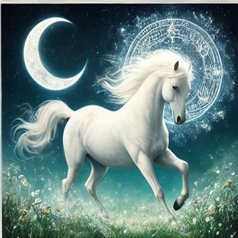 44. 백마가 달빛 아래서 빛나는 꿈 (길몽) – 은은한 재물운과 내면의 평온, 그리고 신비로운 영감이 함께 찾아올 수 있음을 의미합니다.