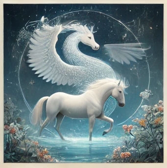 28. 백마가 검은 말과 함께 나타나는 꿈 (길몽/흉몽 혼재) – 빛과 어둠이 동시에 존재하는 상황을 상징하므로, 기회와 위기가 함께 다가올 수 있음을 암시합니다.